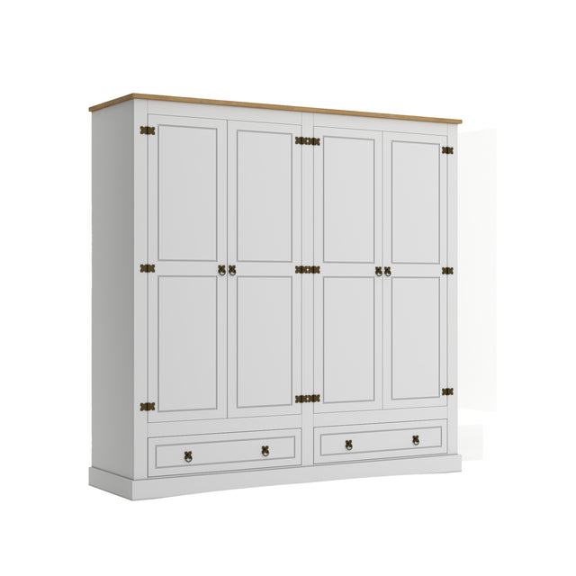 Un hermoso ropero con 4 puertas y 2 cajones, fabricado con materiales de alta calidad para garantizar resistencia y durabilidad. Ofrece un diseño moderno perfecto para cada hogar y el color blanco se adapta a cualquier decoración interior. Una excelente manera de añadir un toque de estilo a su hogar.